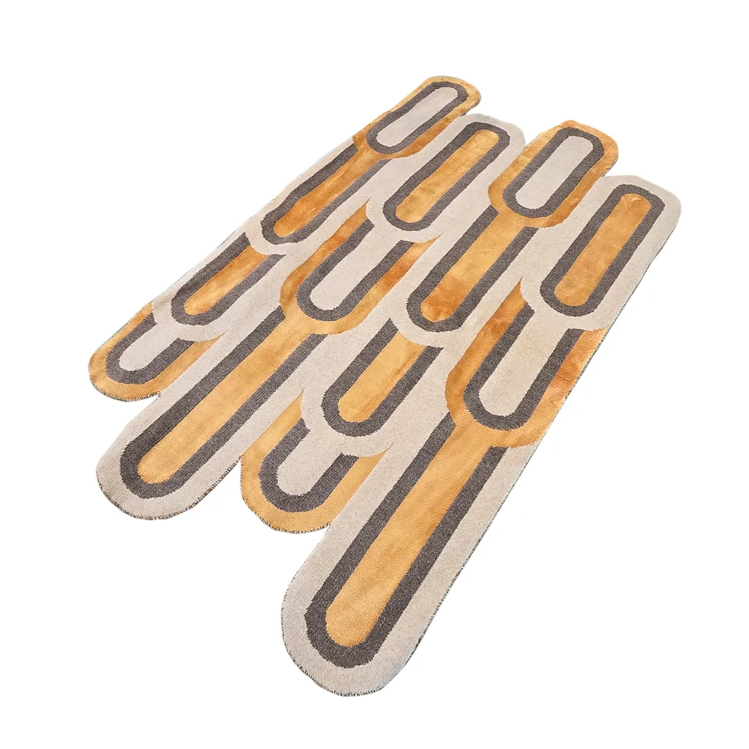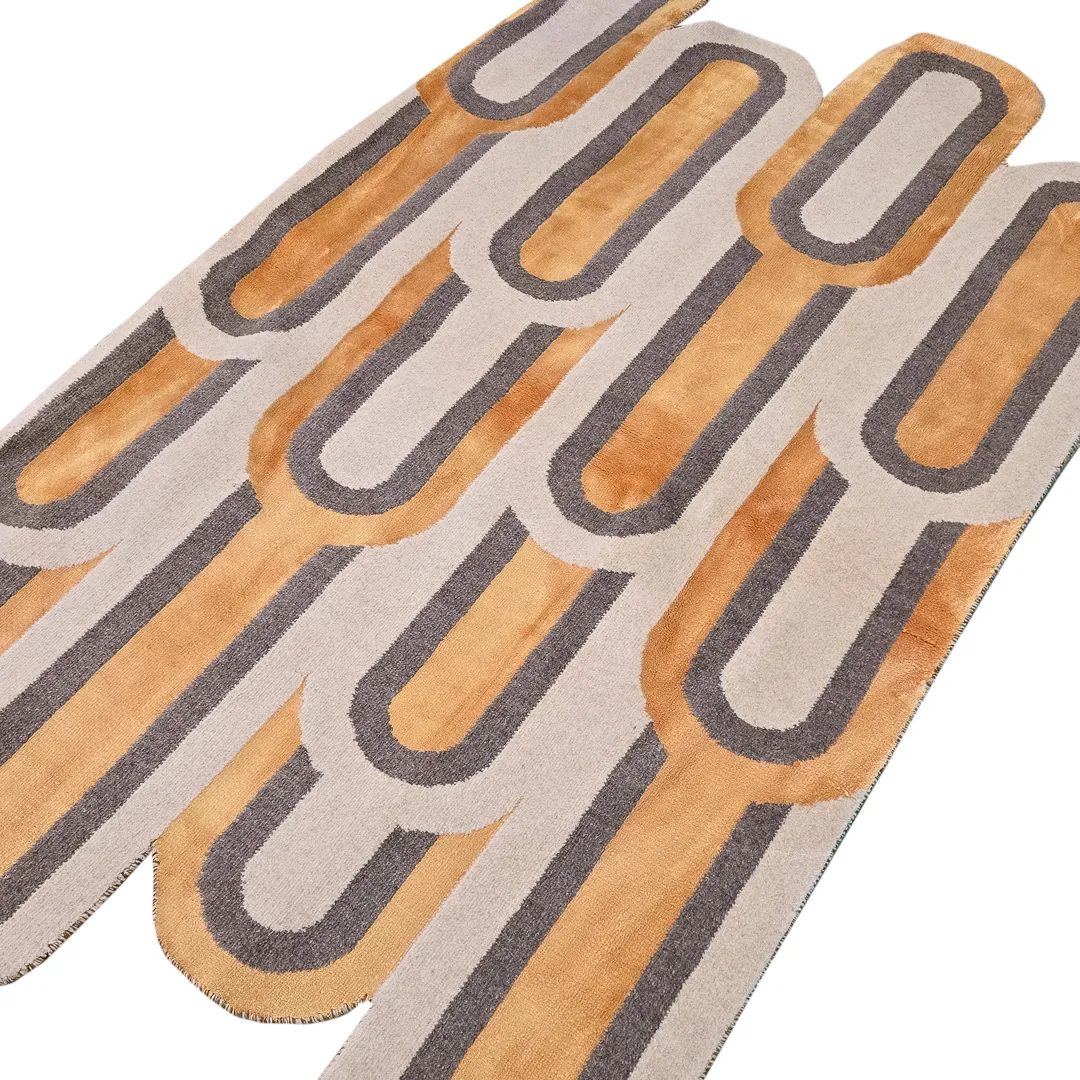 فرش آرک ویو از اشکال منحنی جذابی بافته شده که باعث شده سبک و سیاق مدرن جذابی داشته باشه ، این محصول از ترکیب بافت پشم و ابریشم مصنوعی بافته شده است که قسمت های براق آن برای ایجاد جلوه بصری از ابریشم مصنوعی بافته شده است ، این فرش در رنگ های جذابی مثل نئون بلو ، نئون گلد و نئون گرین بافته میشود. همچنین در ابعاد مختلف هم میتوانید این فرش را سفارش بدهید