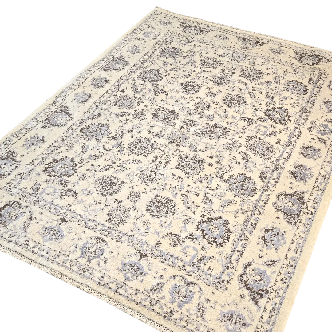 فرش دستبافت مدرن کرم -طرح نئوکلاسیک خلوت