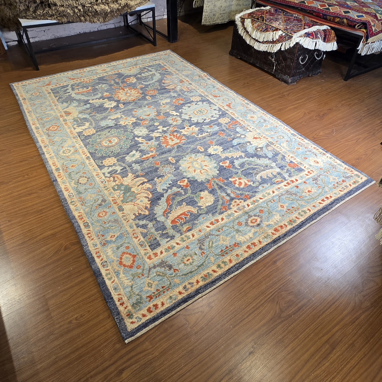 فرش دستبافت آبی نفتی در ابعاد ۶ متری این فرش از بهترین متریال طبیعی بافته شده و رنگرزی گیاهی داره بخاطر همین از درخشش و زیبایی بسیار زیبایی برخورداره