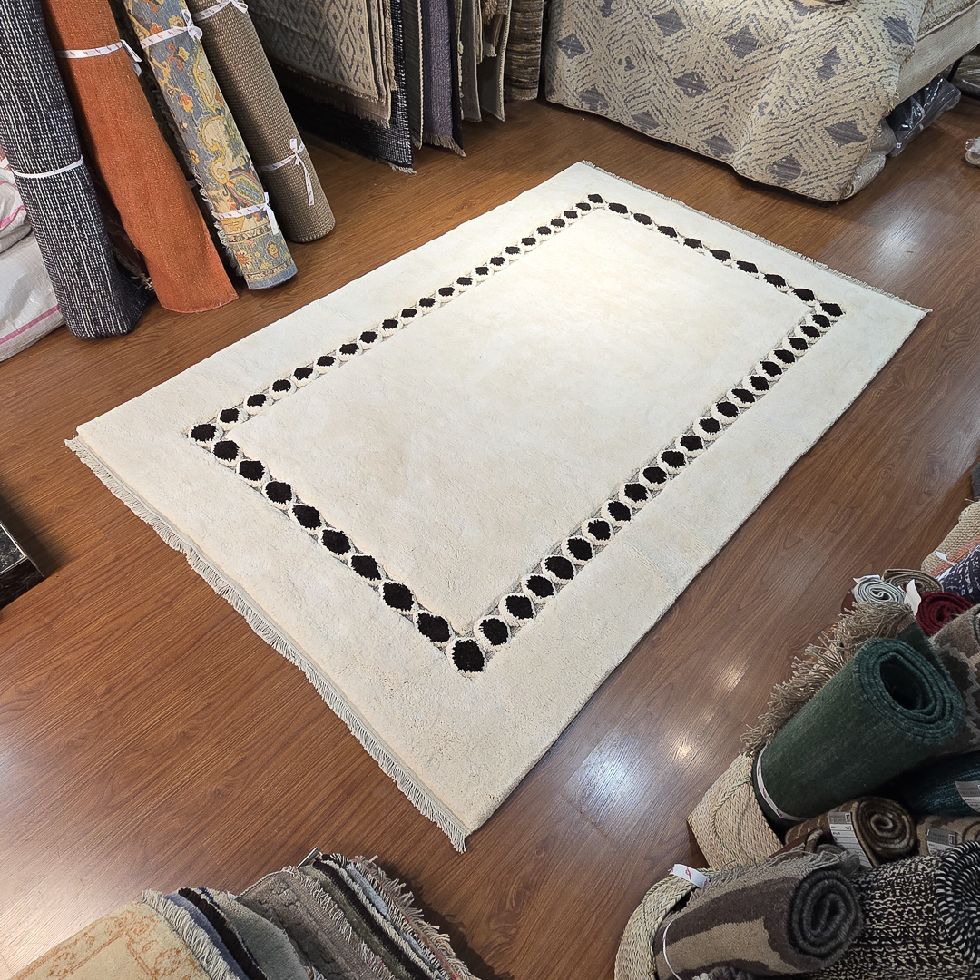 فرش دستبافت مینیمال و ضخیم حاشیه نقطه ای