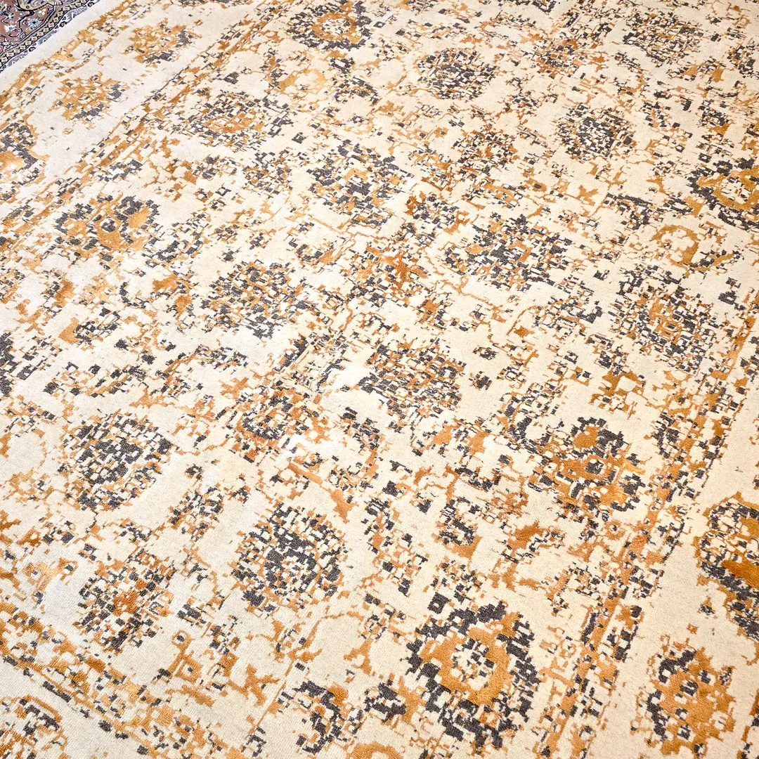 فرش دستبافت مدرن کرم طلایی_نئوکلاسیک ملایم