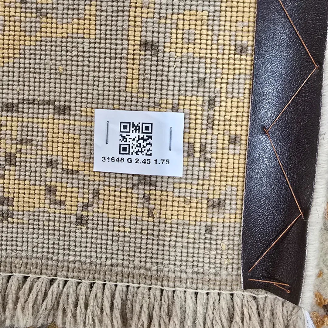فرش دستبافت مدرن کرم طلایی نئوکلاسیک با خطوط مشکی