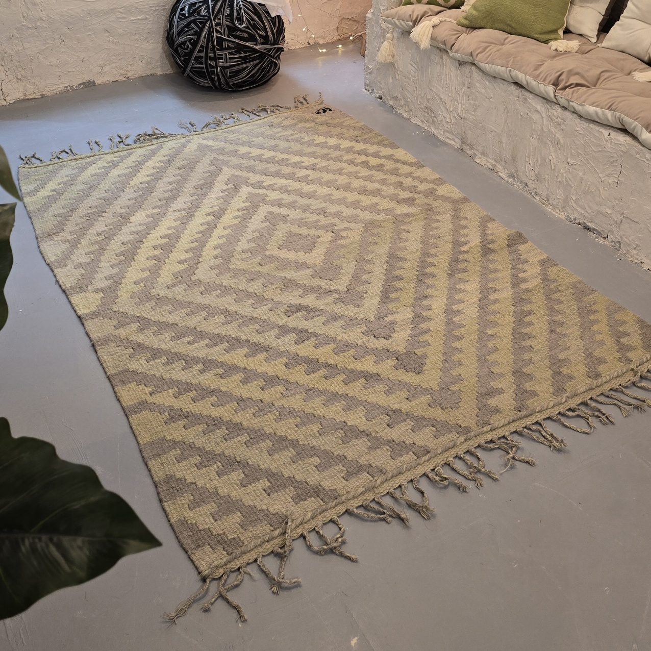 گلیم دستبافت سبز ابرش در ابعاد ۱۵۰ در ۲۰۰ بافته شده از بهترین متریال طبیعی تقدیم نگاه زیباتون