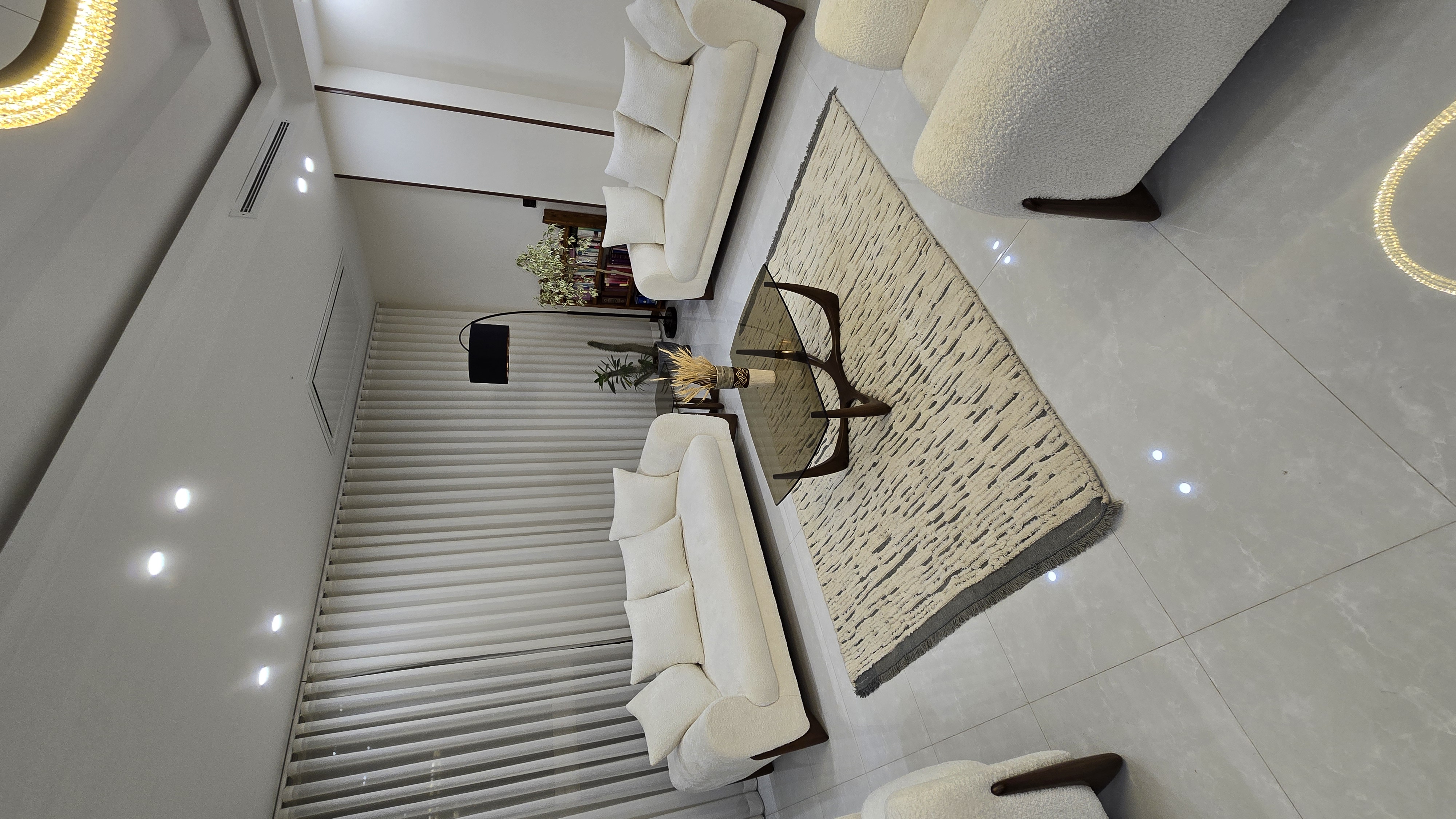 - فرش بزرگ زیر کل ست مبلمان : حس لوکس و مرتب
