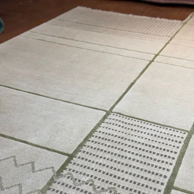 فرش خط نو یکی از خاص ترین فرش های ساختار شکن الگار هست که علاوه بر بهره بردن از اشکال هندسی جذاب در متن بافت خودش و رنگ های مدرنش دارای شکل خاص و جدید هم هست ، این فرش به شکل دفرمه برش خورده و دکور شده تا یک سبک خیلی خاص از فرش مدرن خدمت شما ارائه بشود.