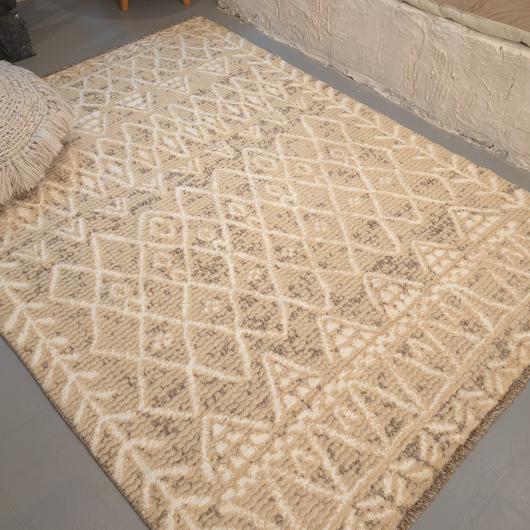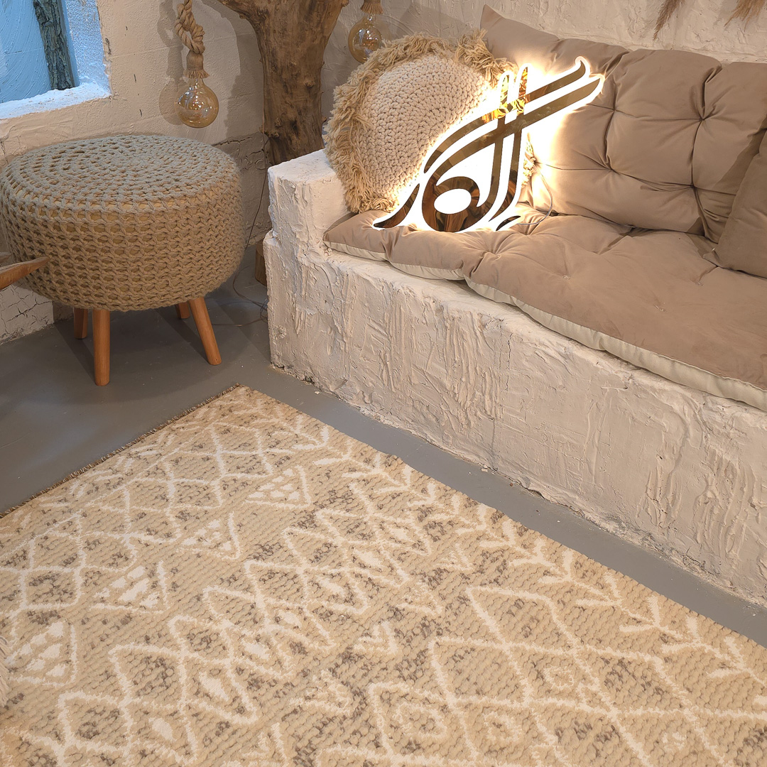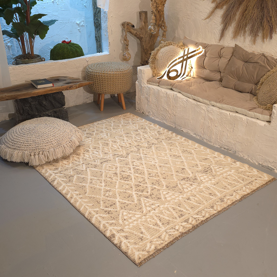به جرعت بوهویی ترین فرش الگار فرش ماکادمیاست این فرش از نقوش قبایل مراکش الگو برداری شده و بافته شده تا جلوه ای از اصالت و طبیعت رو به خونه های هر ایرانی بیاره ، این فرش از بهترین پشم مخصوص فرش ایران بافته شده و در ابعاد رنگ مختلف بافته میشه البته که میتونید رنگ و ابعاد سفارشی هم به الگار سفارش بدید ترکیب رنگ سفید کرم و نسکافه ای دلیلی بر بوهویی بودن این فرش هست و به دلیل استفاده از متریال طبیعی این فرش از لطافت بسیار بسیار بالایی برخوردار هست.
