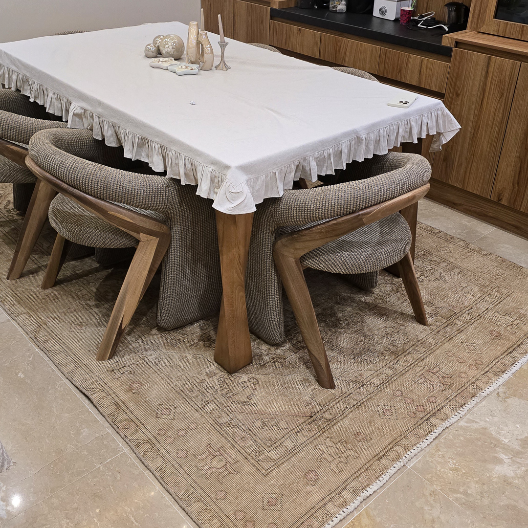 - فرش مدرن دستبافت قرار نیست مرکز توجه خانه باشد بلکه قرار است فضا را منسجم کند.
