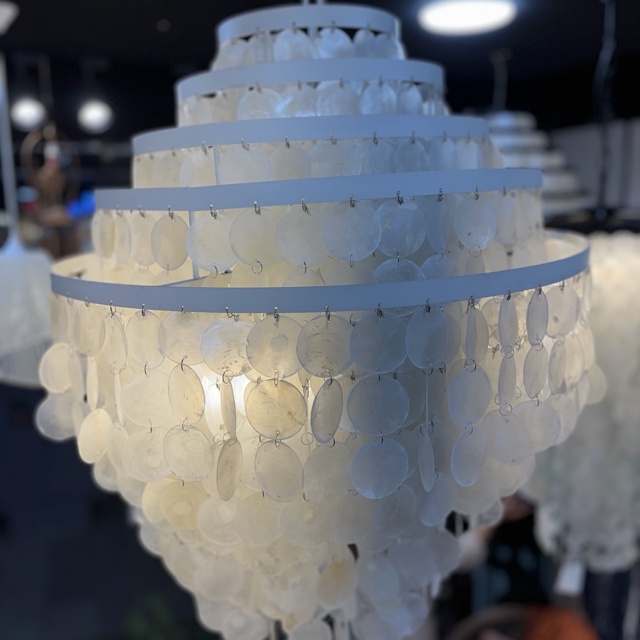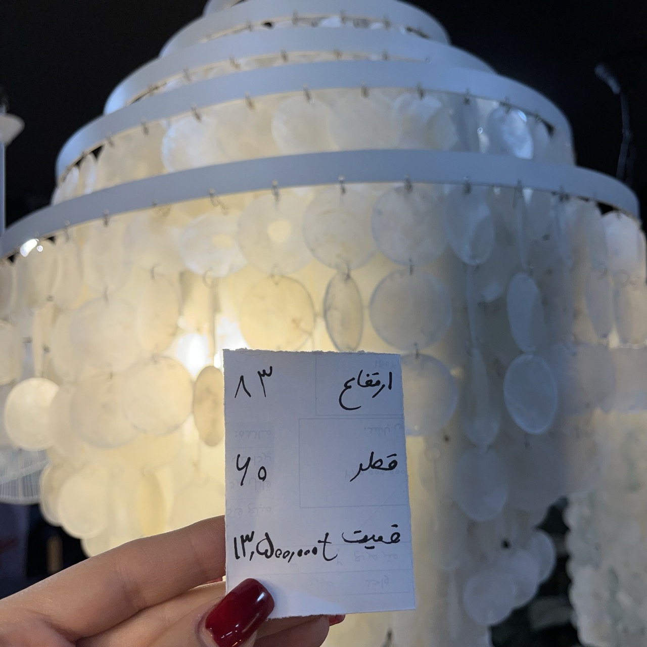 لوستر صدف طبیعی برش دایره ارتفاع ۸۳ سانت قطر ۶۰ سانت.
