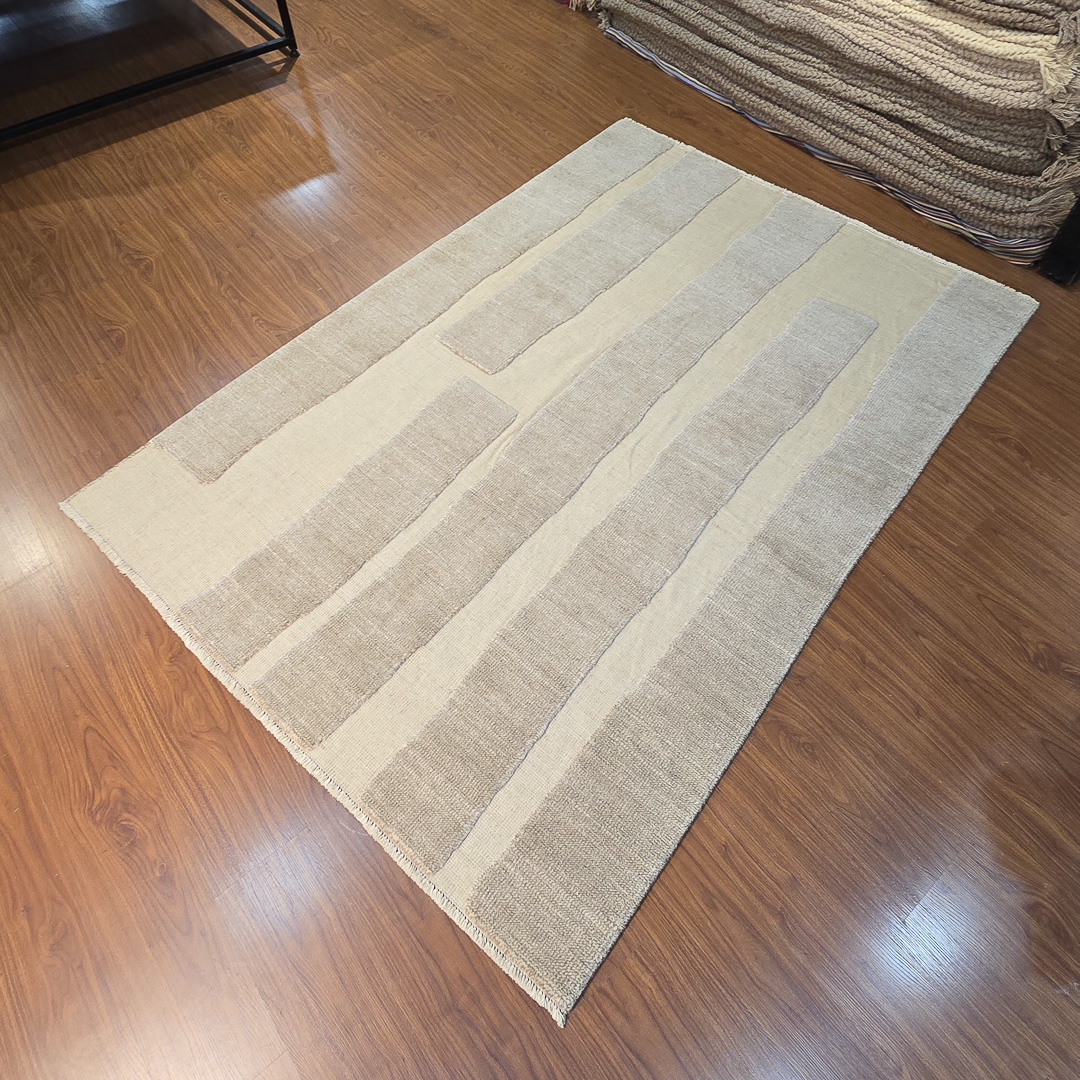 فرش راه ماسه با الگور گرفتن از اشکال خاص شن صحرا بافته شده تا بیشترین حس ارگانیک رو در منزل شما داشته باشه این فرش رو میتونید در کنار گلدان های دستساز سفالی استفاده کنید و از زیبایی این فرش لذت ببرید این فرش از بهترین متریال طبیعی بافته شده.