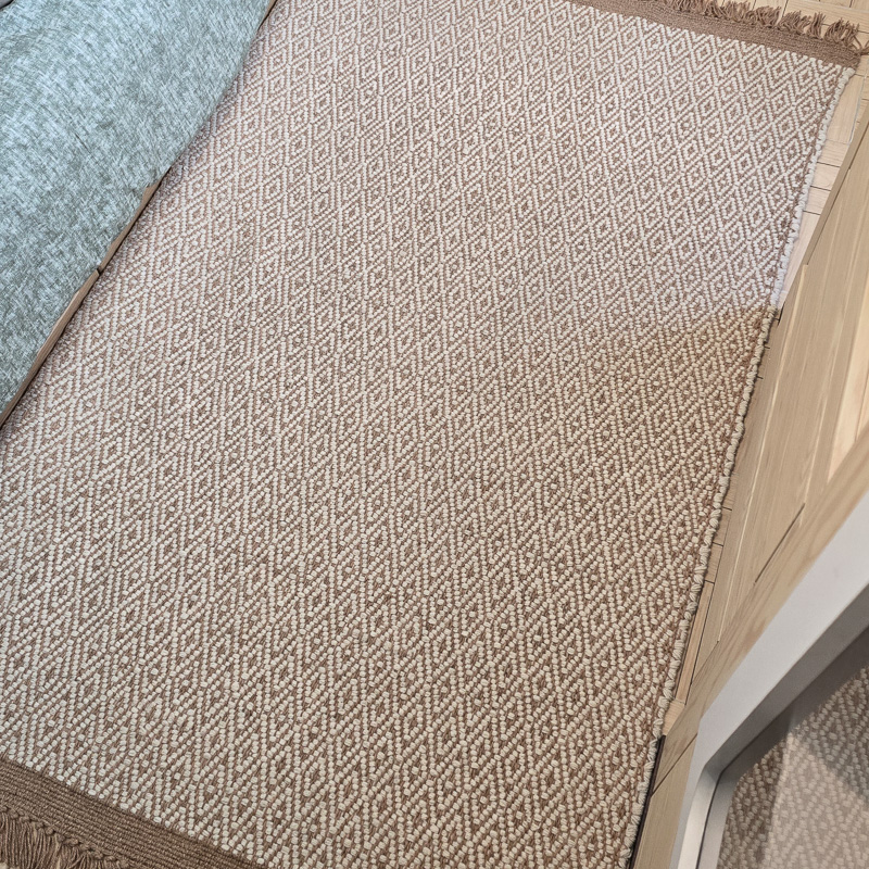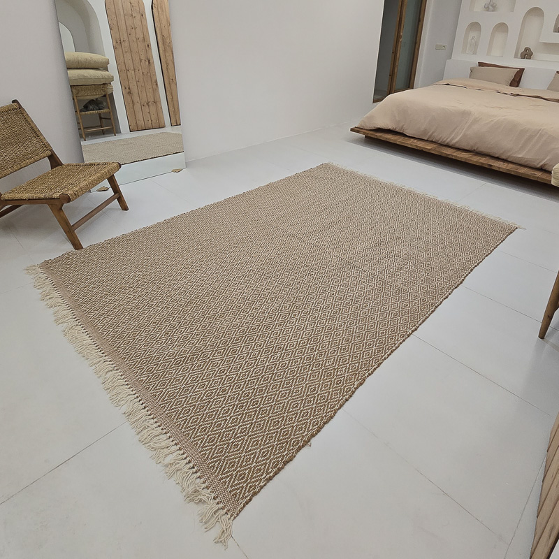 فرش توسکا از فرش های مراکشی الگاره که یکی از نکته های مهمش سبک مینیمال و قشنگه که در ترکیب با صندلی و فرنیچر چوبی بسیار بسیار زیبا میشه ، متریال این فرش از پشم طبیعی درجه یک هست و کاملا دست بافته که میتونید در ابعاد مختلف ثبت سفارش بدید و رنگبندی دلخواه خودتون رو داشته باشید همچنین به دلیل سرعت بافت بالای این فرش قیمت بسیار مناسبی دارد.