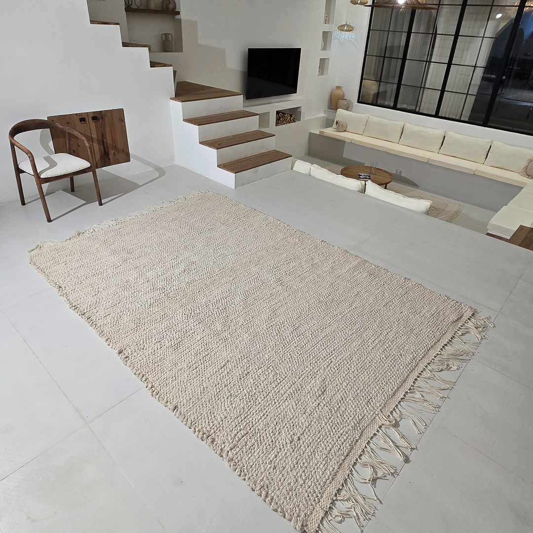فرش گیسبافت یکی از زیبا ترین فرش های مینیمال الگاره که بافت درشت و خیلی زیبایی داره فرش پشمی گیسبافت به دلیل بافت درشتش سرعت بافت بالا تری داره بخاطر همین از فرش ماراکویی قیمت مناسب تری داره ، در رنگ ها و ابعاد مختلفی هم تولید میشه که میتونید به صورت سفارشی هم سفارش بافت بدید.